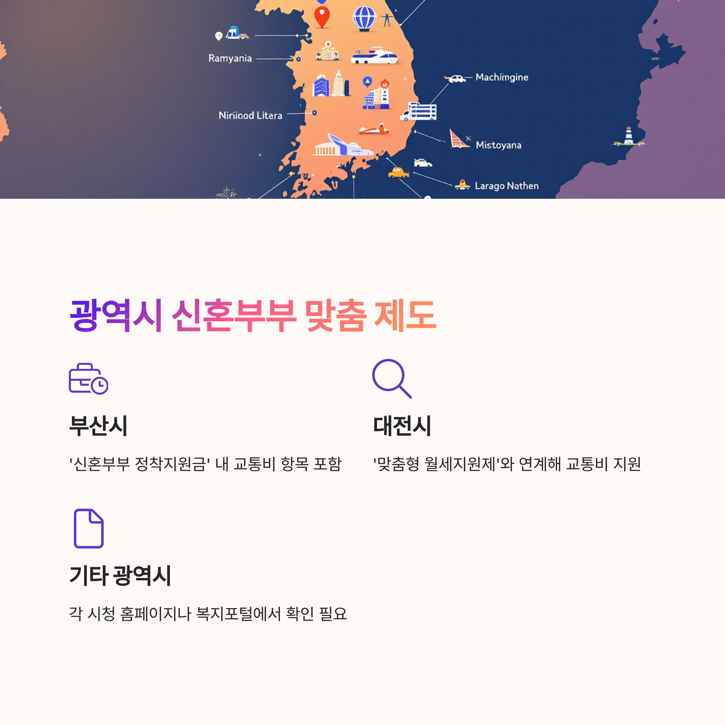 예를 들어 부산시의 경우, '신혼부부 정착지원금' 내 교통비 항목을 포함하거나,